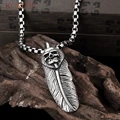 Metal Feather Necklace For Man Stainless Steel Punk Rock Skull Pendant Vintage Jewelry Fashion Chain Accessories Erkek KolyeUSD 11.89/piece