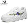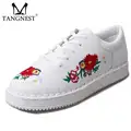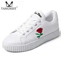 Tangnest 2017 Embroider White Women Shoes Casual Flower Printed Women\'s Vulcanize Shoes Lace Up Flats Woman Size 35~40 XWC1082USD 35.98/pair