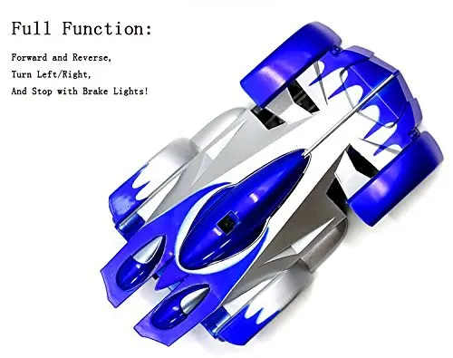 3.Drive it straight at the wall, and when it gets there it starts to tilt upwards and at 45 degrees the monster gravity defying Traction Technology kicks in literally sucking the thing to the wall, where you drive it around just as if it was on the floor. If racing horizontally isn\'t enough, family and friends will be amazed when they see you race your new micro car on the walls and even ceilings!