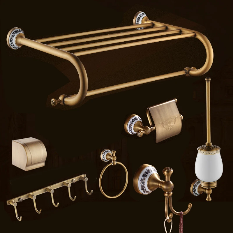 Wall Mounted Bathroom Bath Hardware Sets Antique Brass Towel Bar Toilet Brush Holder Towel Ring Hooks Soap Dish Basket